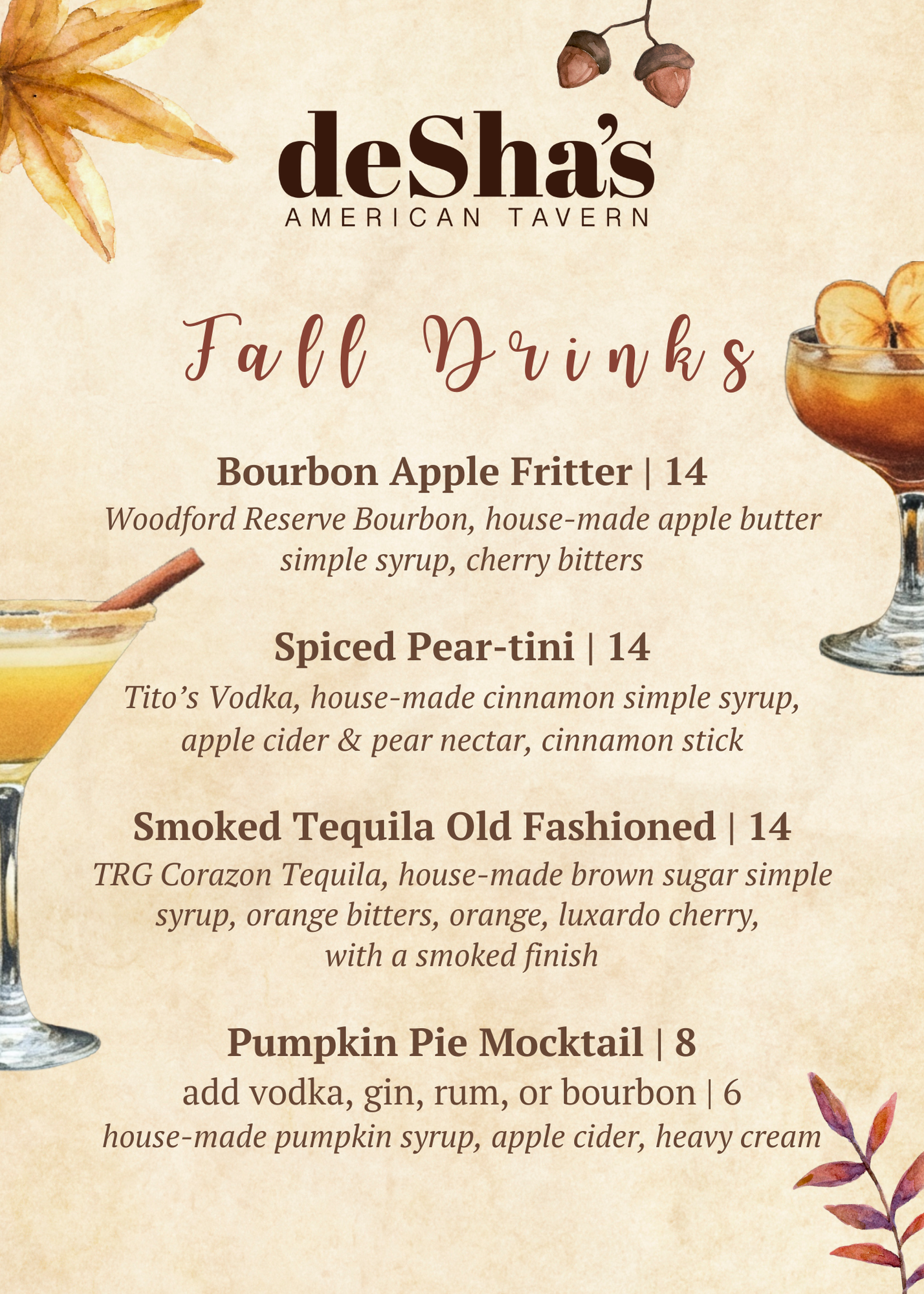 Fall Drink Features: 9/29-11/2Happy Hour
